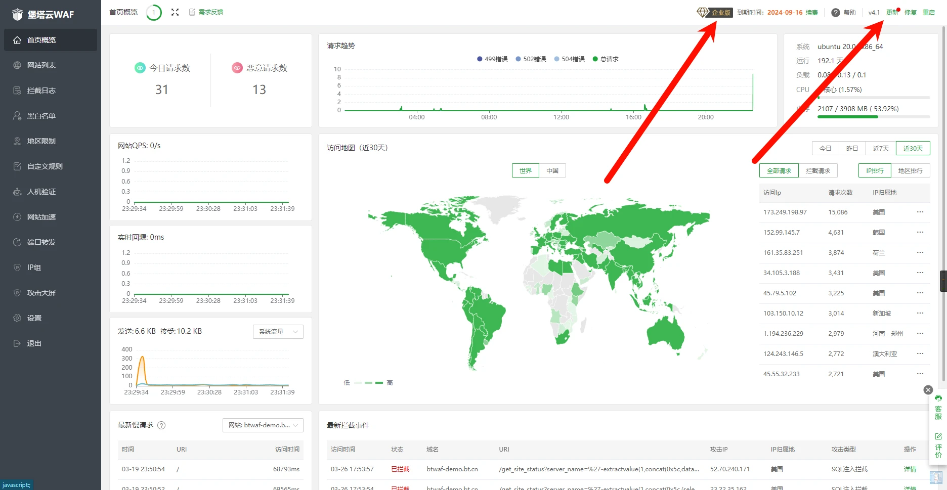 因为宝塔云 WAF 的 demo 已经是专业版了,考虑入不入可以直接看官方 demo,故此文不专门介绍