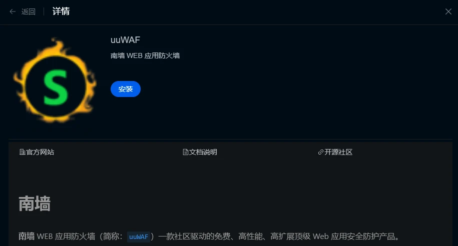 最开始知道uuWAF是在1Panel上看到的,当时1Panel说会弄一个开源WAF放进应用商店里