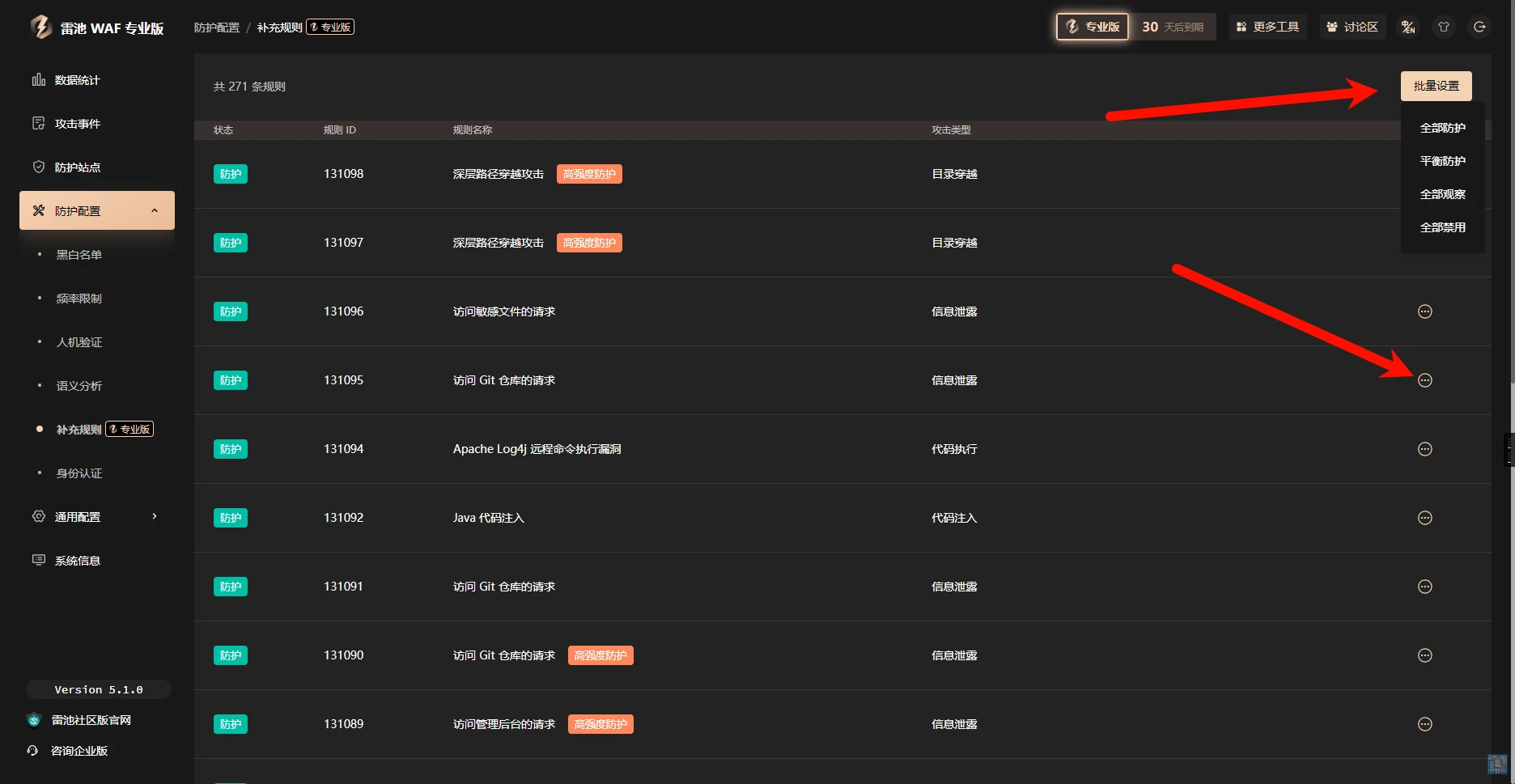 专业版在补充规则上的设置项已经全部开放了,设置成平衡防护就是社区版强制使用的规则