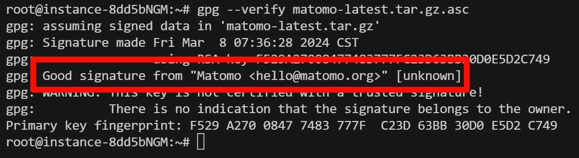 gpg --verify matomo-latest.tar.gz.asc