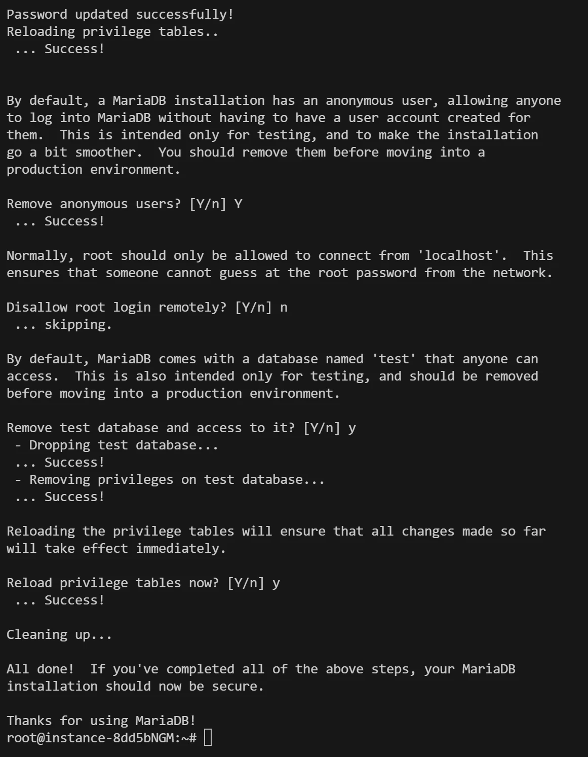 Thanks for using MariaDB!