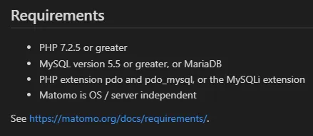 - Matomo的运行与系统、服务器无关(也可译为独立于系统、服务器)