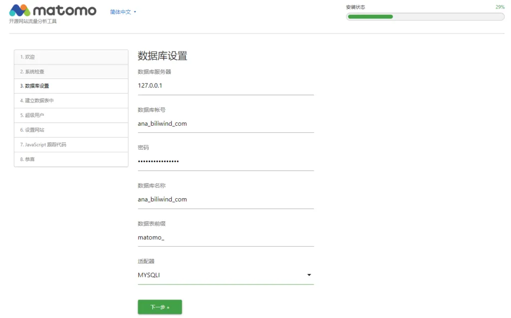 之后无脑下一步即可,随后会跳转到后台登录的页面