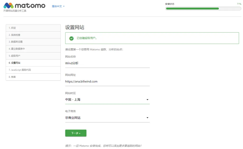 再次点击下一步,会要求配置站点信息,这里的站点就是你添加的第一个分析站点
