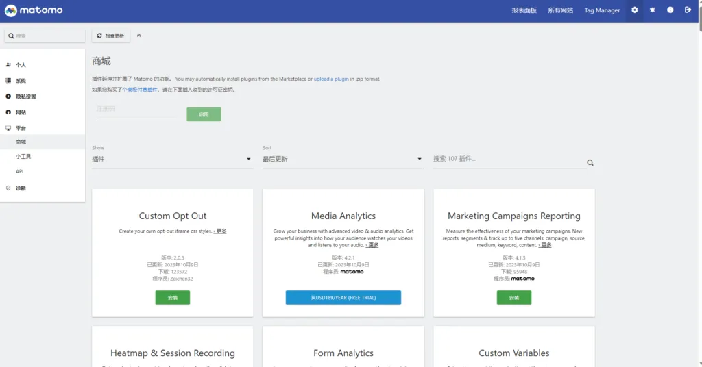 我们点击平台-商城,可以在这里寻找自己喜欢的插件
