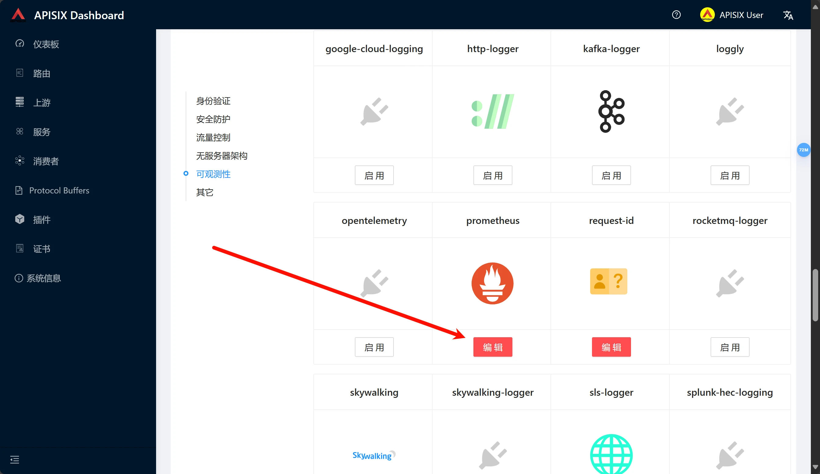 我们往下滑,找到普罗米修斯的监控插件,直接启用即可