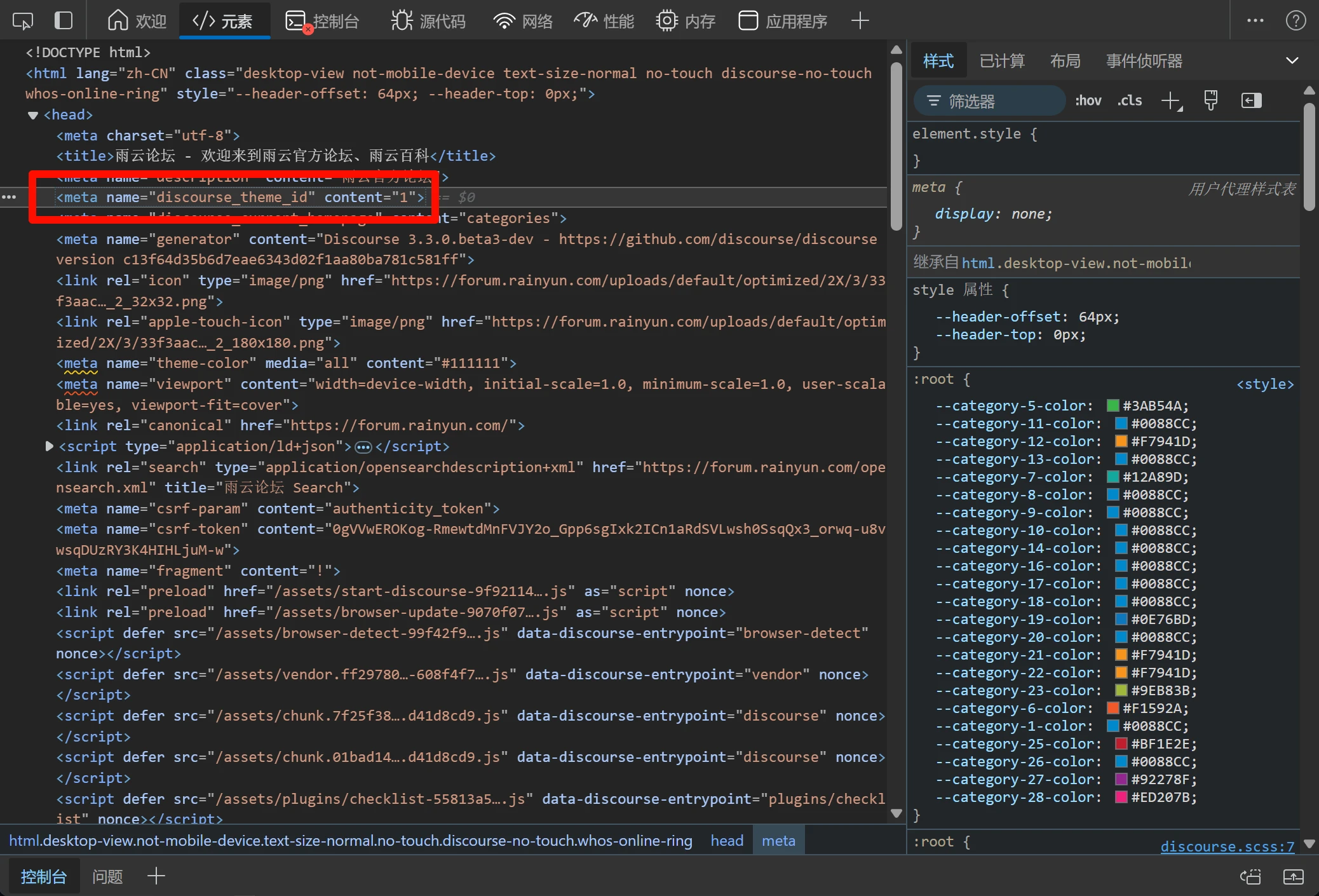 如果没有控制台提示怎么办呢,这时我们需要打开元素选项,并且尝试从引用的文件中寻找