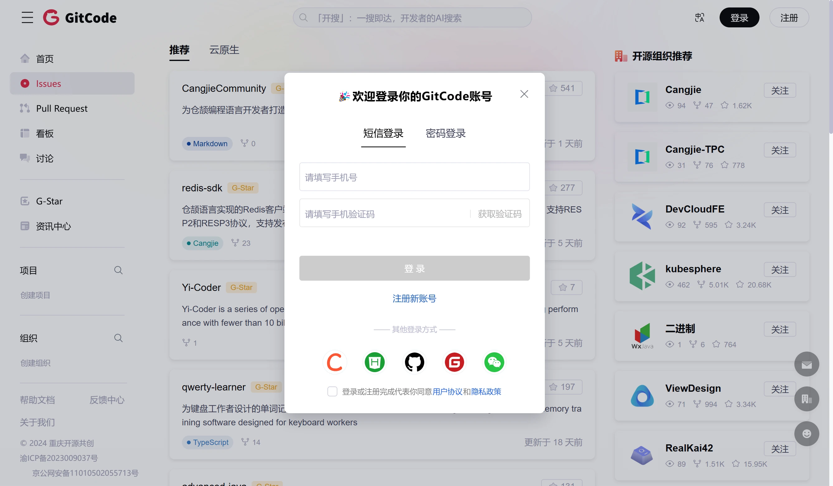 Gitee 原名 Git@OSC,是一个中国的代码托管平台,由开源中国(OSChina)运营。由于是中国运营的平台,强制登陆、强制手机号验证、下载限速等都是常态了,并且相较于GitHub,Gitee的限制更多