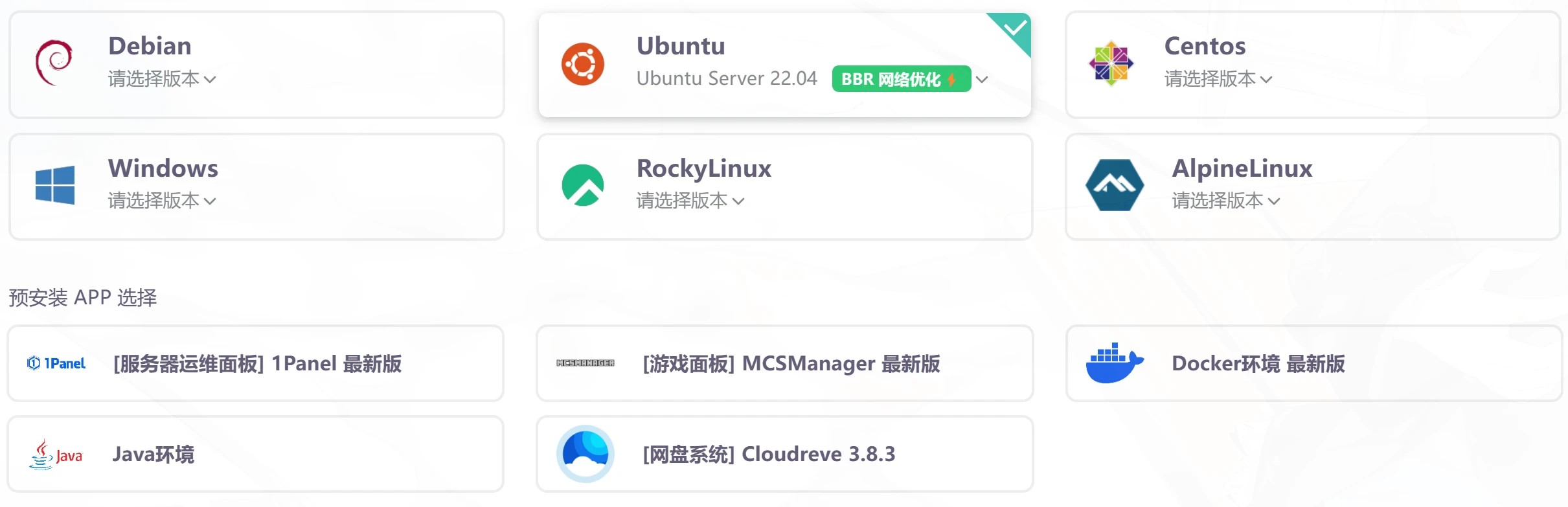 这里以雨云服务器的 1 元试用机为例,并且完整演示 Docker 的安装,所以不预装任何 APP,系统使用 Ubuntu 22.04