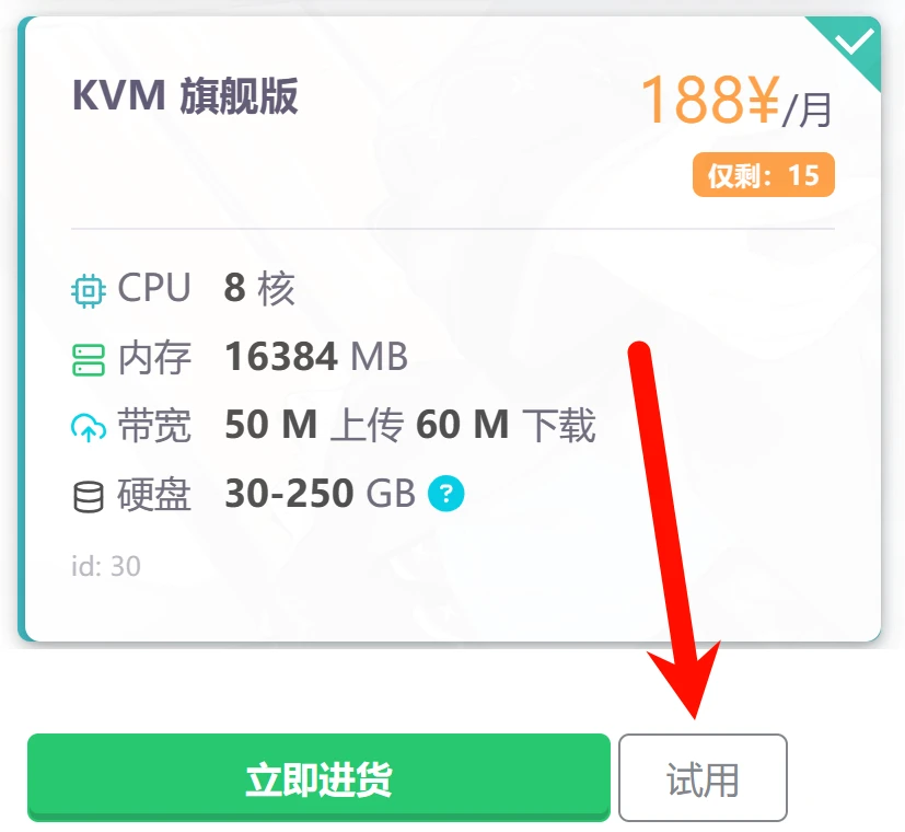 购买时不要点击立即付款,点击右边的试用即可 1 元试用 1 天