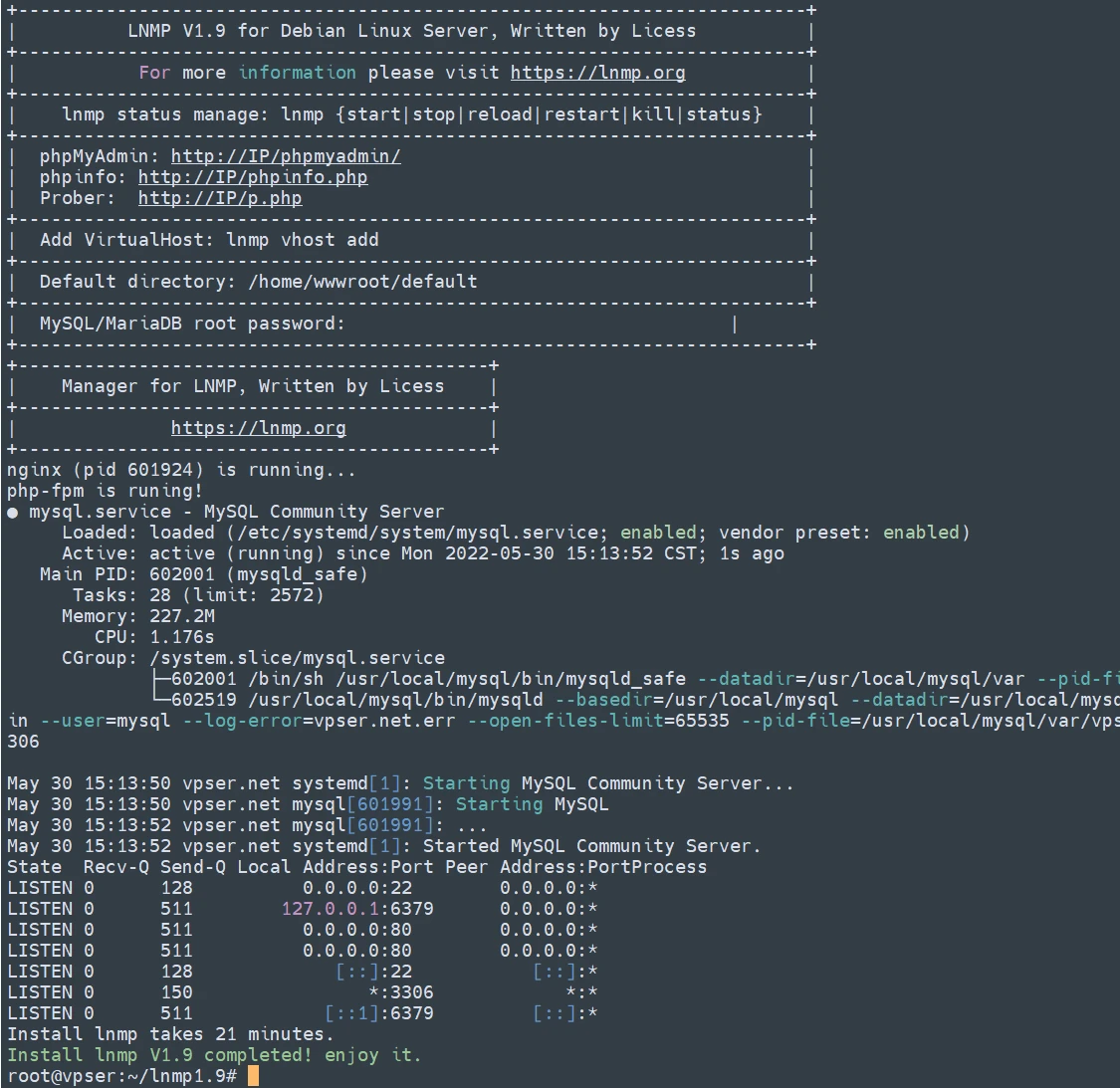 wget http://soft.lnmp.com/lnmp/lnmp2.0.tar.gz -O lnmp2.0.tar.gz && tar zxf lnmp2.0.tar.gz && cd lnmp2.0 && LNMP_Auto="y" DBSelect="4" Bin="n" DB_Root_Password="root.mysql.password" InstallInnodb="y" PHPSelect="11" SelectMalloc="1" ./install.sh lnmp