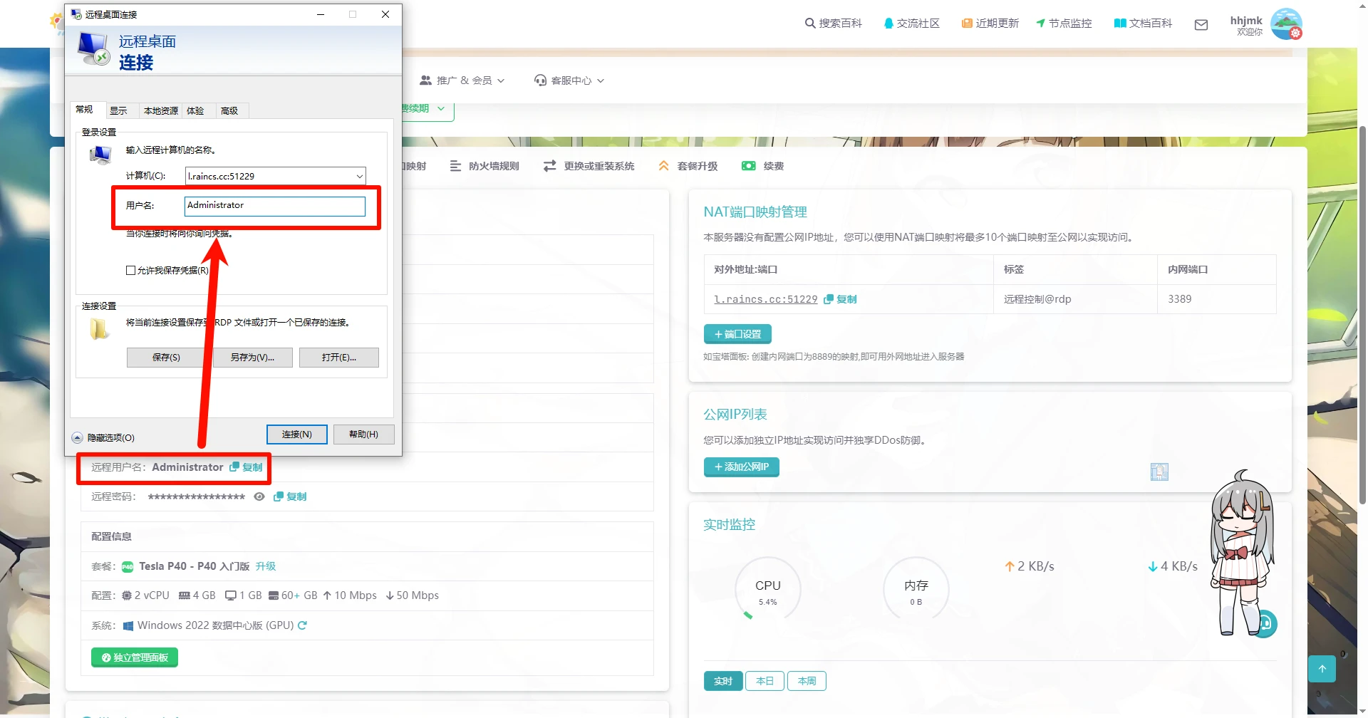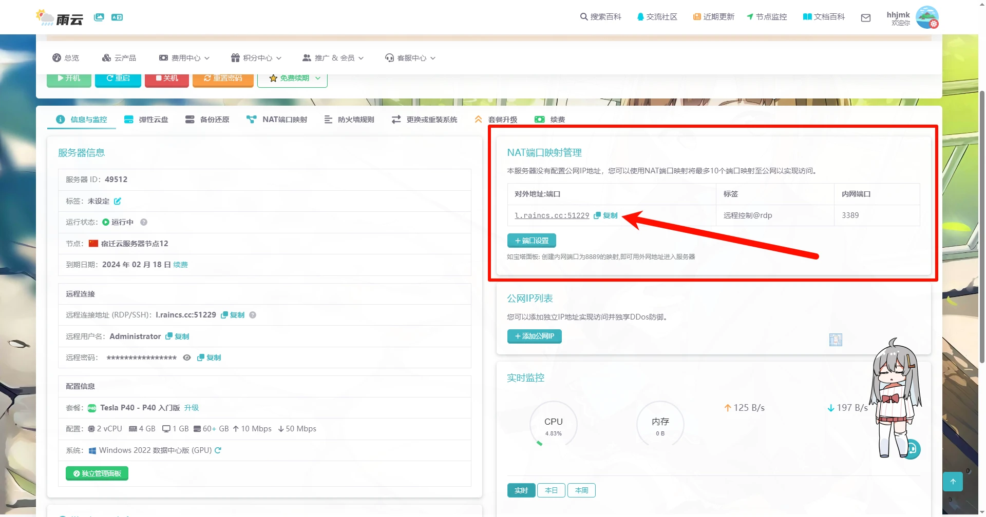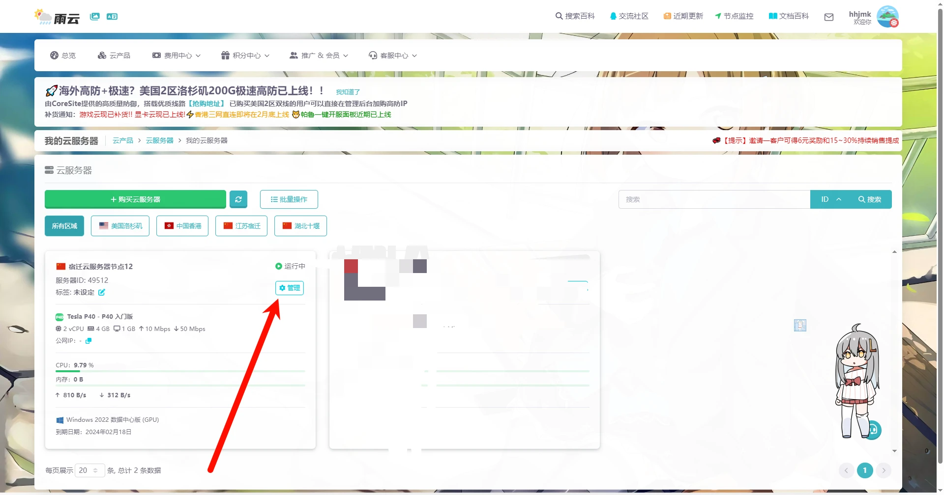 服务器创建完成后,点击管理进入管理面板