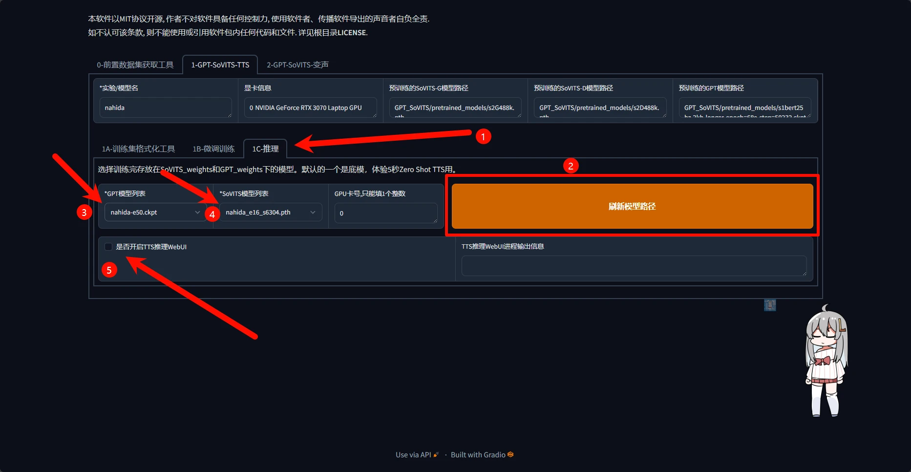 TTS推理WebUI进程输出信息中提示进程已开启后需要稍等1分钟左右加载模型