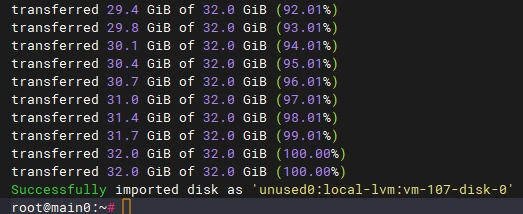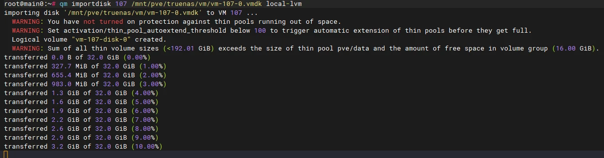 qm importdisk 107 /mnt/pve/truenas/vm/vm-107-0.vmdk local-lvm