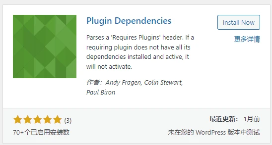 这向插件用户提供信息以及指向 WordPress.org 插件存储库的链接以安装和激活依赖项。