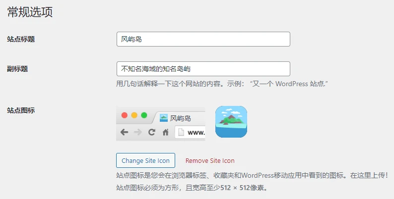 如果你还没有设置站点图标,那么这里看上去应该是这样的: