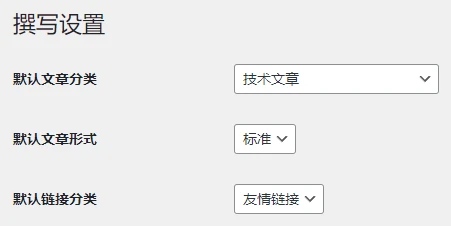 - 默认文章分类:在发布新文章且没有指定分类时,WordPress 会将文章自动归为此分类(此选项的默认值是“未分类”)