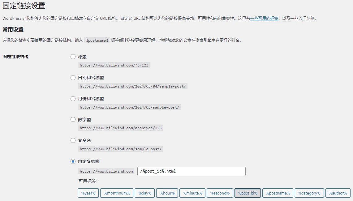 - 站点地址(URL):这通常是与 WordPress 地址(URL)相同的,但是如果你有一个页面叫做 home ,你可以将此项设置为 https://www.example.com/home/ 来达到将访问 https://www.example.com 的访客重定向到 home 页面的效果(此选项与“您的主页显示”选项略有不同)